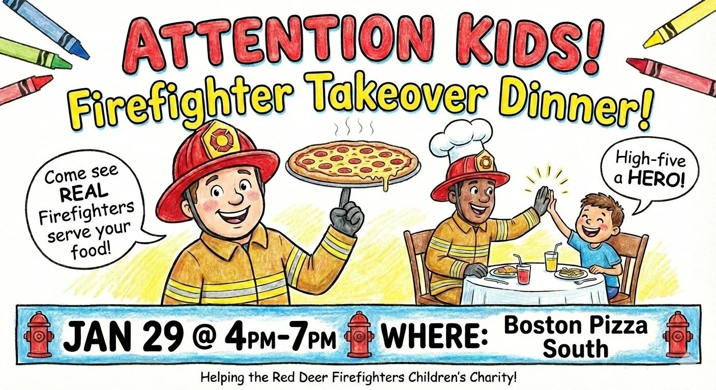 Why come? Every tip and donation raised during the event goes directly to the Red Deer Firefighters Children's Charity. Your meal helps support kids in our community!